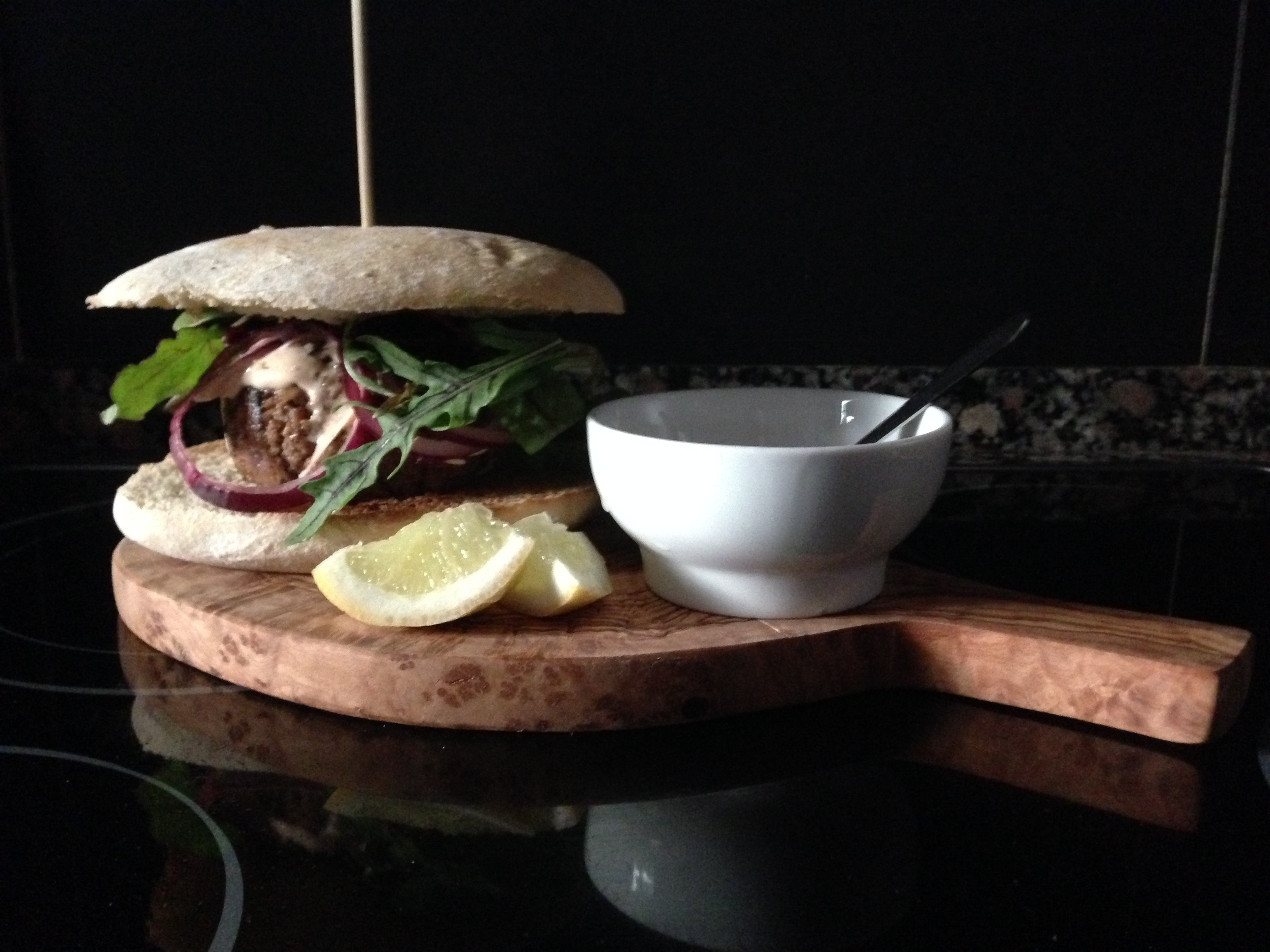 I was privileged to eat one of these burgers just last night. I think that what really surprised me was how quickly rob put it all together and had it ready to throw on the BBQ. WOW, juicy, crunchy and absolutely delicious. I think these burgers will become standard at my kitchen and I can’t wait to make them myself!