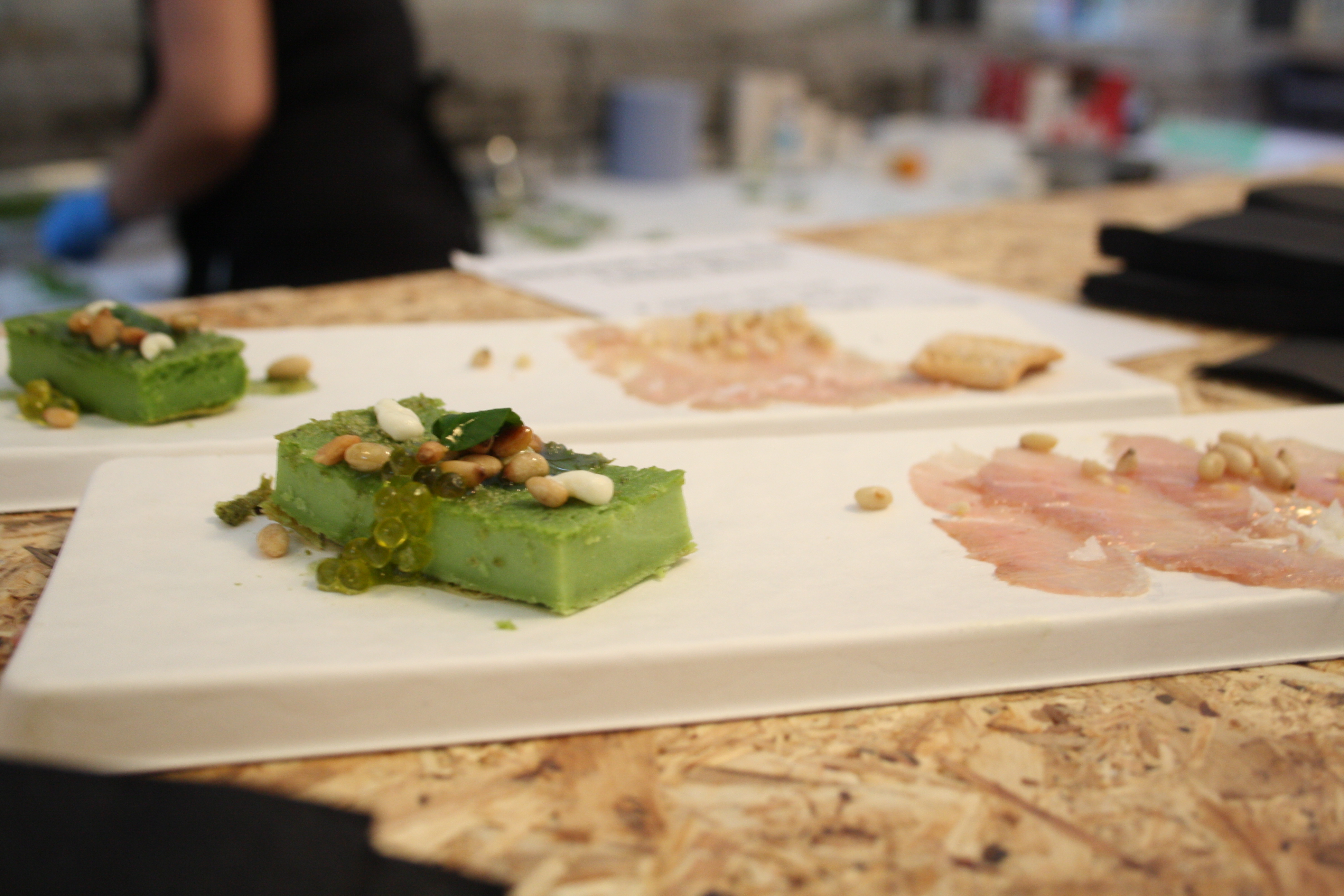 SNACK – a dish of two parts, the first a pesto calentita served with toasted pinenuts and olive oil beads which was very nice however, not a true calentita in the purest sense of the word, the second jamón de toro. This ‘jamón’ was thinly sliced fatty tuna (ventresca) brushed with fat (good fat). The fat tasted like Spanish jamón de pata negra so therefore acorn rendered fat. And just like high end Spanish hams, the fat coated the inside of the mouth and made you question whether this was really cured ham or tuna. Delicious.