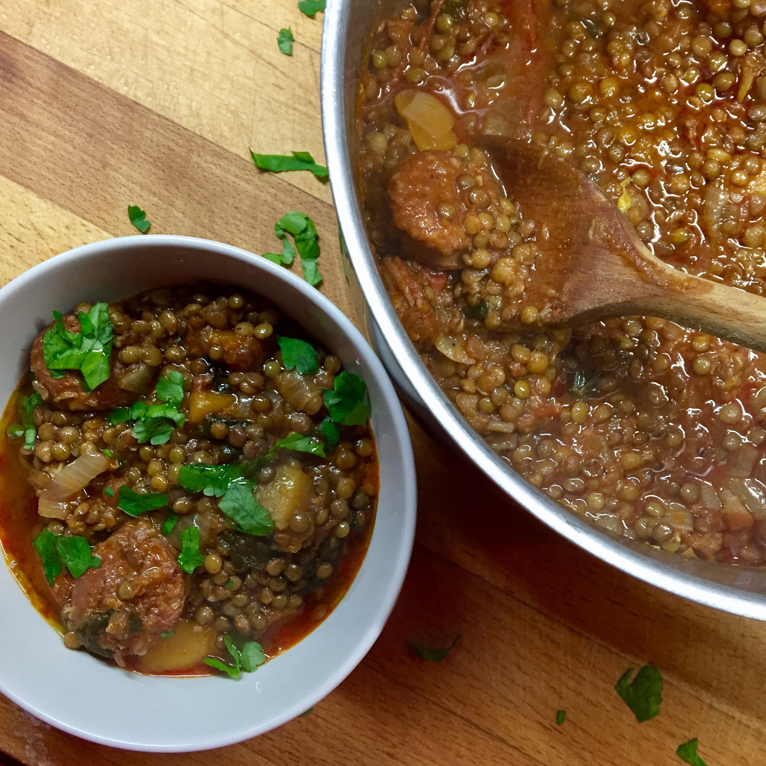 This great one pot wonder of lentils, pumpkin and chorizo is a great winter warmer guaranteed to put a smile on your face with every spoonful. If you’re worried that it would take ages to prepare and cook, think again! Chop everything into roughly the same size and put into a pot with the lentils and water. I put it together straight after work and had dinner ready within the hour.