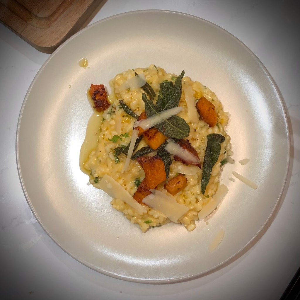 6th: Serve the risotto topped with butternut squash, sage leaves, parmesan shavings and a drizzle of olive oil (or better still with any sage butter you may have in the pan!)