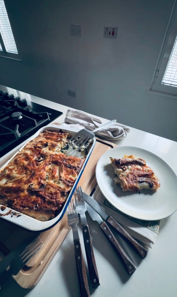 10. Bake in a 190°C/374°F oven for 30mins. Once the bechamel is golden and bubbling take out of the oven and serve!